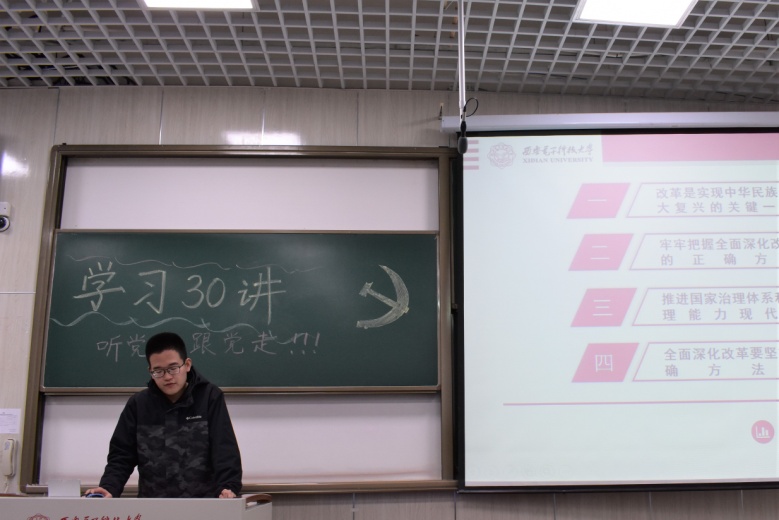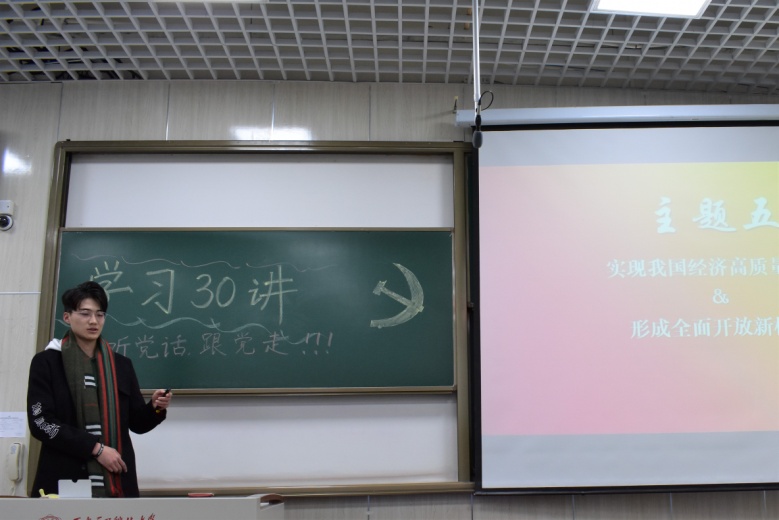 最后,张志为老师总结了此次“学习‘三十讲’”活动的开展情况,强调了大学生深刻理解“新时代坚持和发展什么样的中国特色社会主义、怎样坚持和发展中国特色社会主义”的重要意义,号召全体发展对象和入党积极分子,在各个方面积极发挥先锋模范作用,在思想上,不断加强学习,保持先进性;在学习上,态度端正,自觉勤奋努力做好大学生的本职工作;在生活中,主动关心身边同学,营造和谐愉悦氛围。