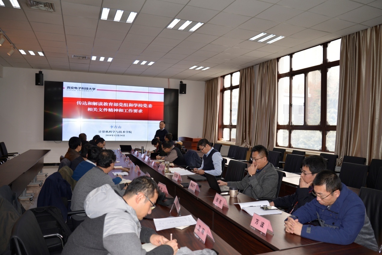 学院副院长田聪就教育部学位管理与研究生教育司关于研究生教育相关精神和要求进行了传达,重点解读了深化研究生教育系统改革的8个重点方向。副院长苗启广就本科教育工作会议精神有关精神进行了传达,特别是从课程改革角度对“什么是金课、建设五大金课”等进行了解读,结合学院本科课程实际设置情况提出“加强重视、提前部署、挖掘特色”等工作思路。副院长赵韩强就《今年会官方网站2018-2020年岗位聘任工作实施细则》向与会成员做全面传达和解读,明晰了“师德为先、业绩为重”的岗位聘任工作理念,更加明确了岗位聘任工作的重点。副院长沈玉龙传达了《关于开展“四唯”专项清理行动的通知》精神,重点解读了“四唯”现象的清理方向,明确了行动重点。