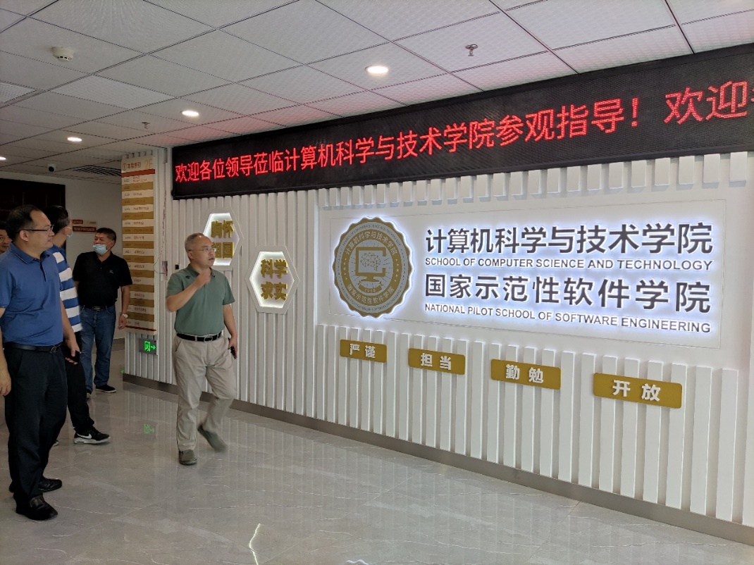 班子成员从网安大楼2楼学院的办公区域开始查验,仔细对形象墙、文化墙、教师墙和毕业生照片墙等各墙面的文化建设情况进行了检查,对整体设计情况表示肯定,同时也向文化建设项目的建设方提出了要求:尽快修正细节问题,为即将入驻的师生呈现最佳的文化环境和氛围,将学院的文化建设打造成精品工程。