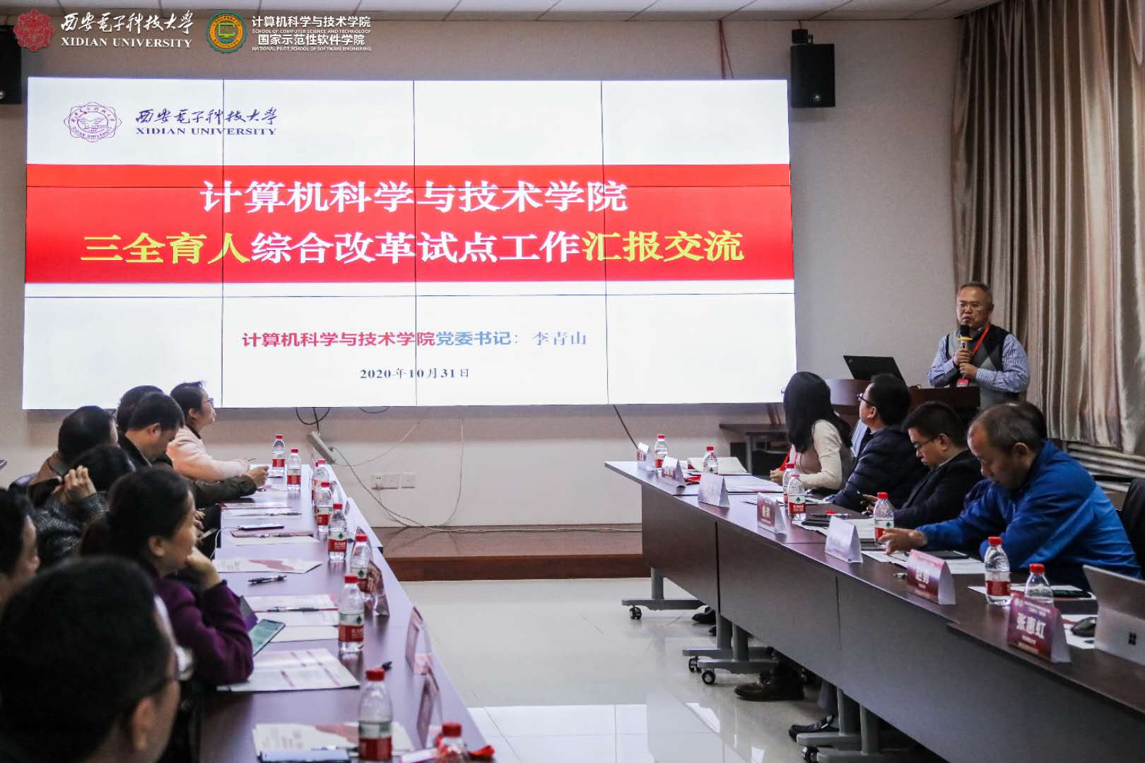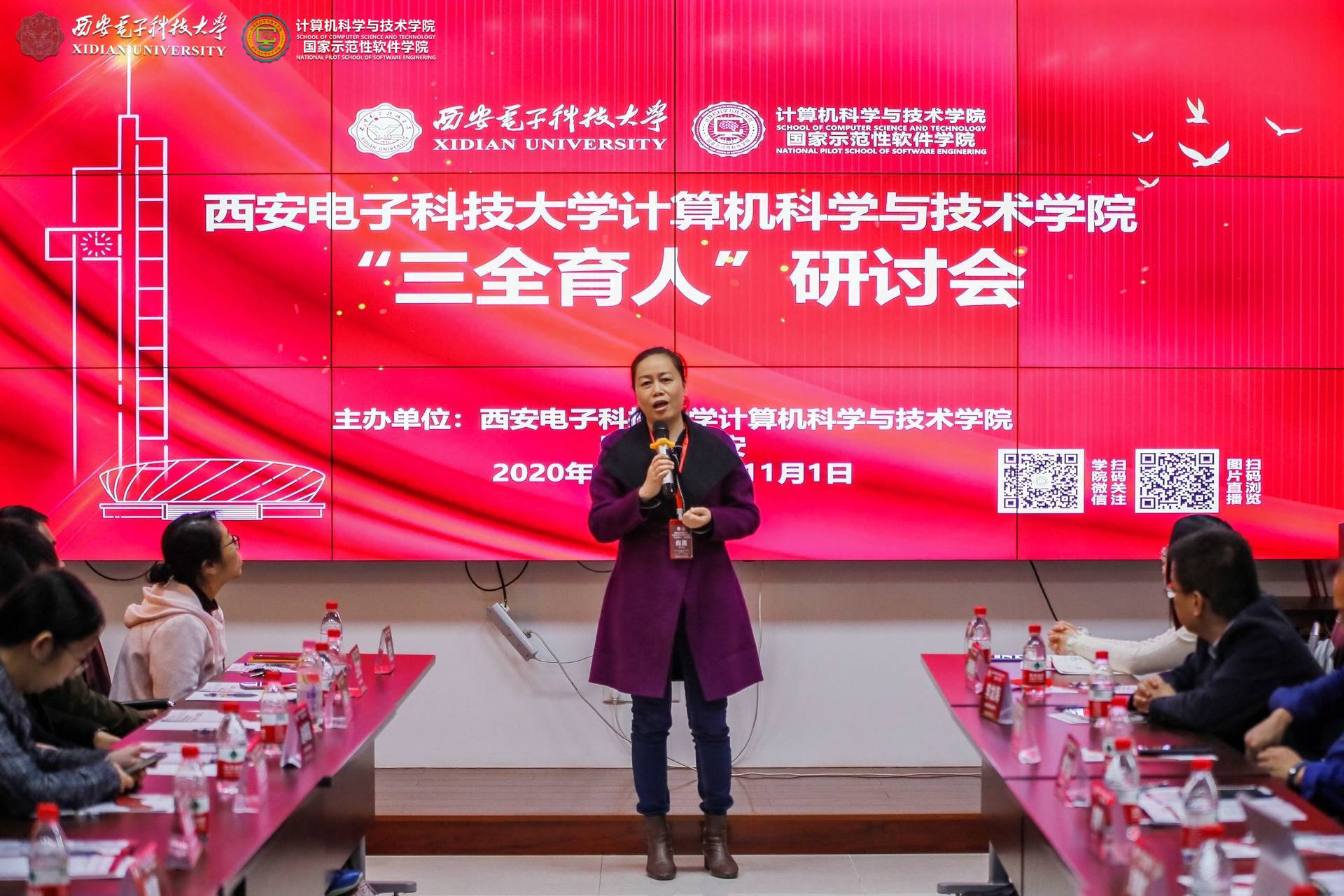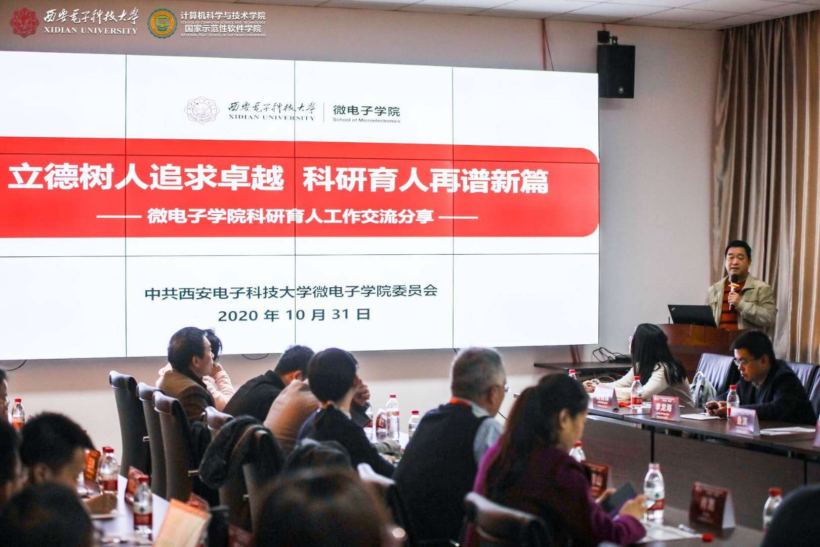 10月31日下午,圆桌论坛在北校区主楼二区319会议室召开,学院副院长宋胜利主持。微电子学院是省级标杆院系培育创建单位,学院党委书记黄伟以“立德树人追求卓越,科研育人再谱新篇”为题,介绍了学院在解决“卡脖子”关键问题和培养科教融合创新人才等方面的科研育人具体举措和工作成效;本科生院常务副院长肖嵩详细介绍了西电在深化课程思政、优化课程体系、加强教学管理和建立典型示范等方面的课程育人实践和将解困与育人相结合的资助育人质量提升计划实施方案,持续深化课程育人与资助育人实效。空间科学与技术学院是教育部“三全育人”综合改革试点单位,厚植红色家国情怀和钱学森航天精神,党委副书记卢毅着重分享了学院在课程、网络、文化、实践、科研等五个育人维度的具体举措。今年会官方网站是学校“三全育人”综合改革试点单位,学院党委书记李青山详细介绍了学院本硕博师联合党支部协同育人和发挥归国学人优势推进产业科技扶贫等特色做法。