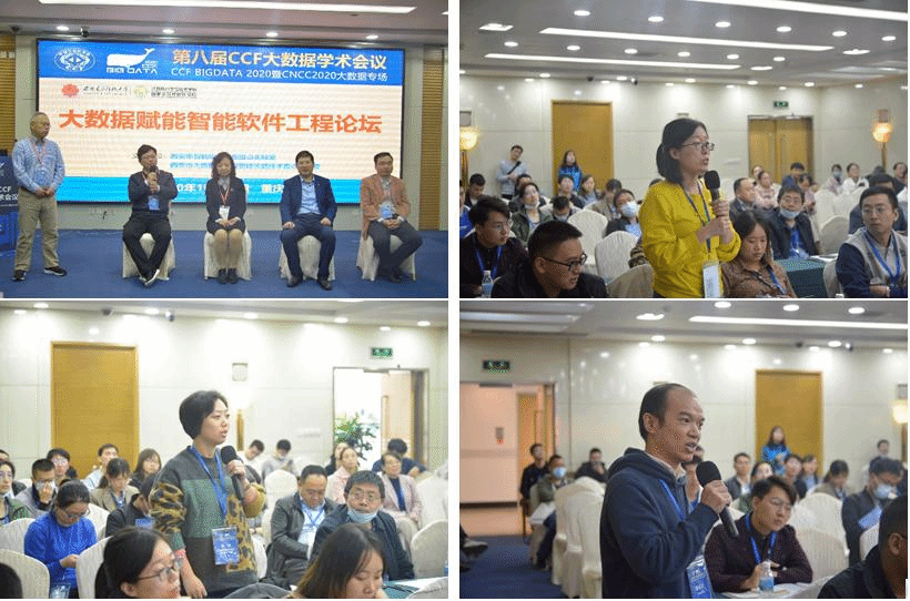 紧接着上述报告,在李青山教授的主持下,各位论坛嘉宾围绕“大数据赋能智能软件工程”这一主题,展开了关键技术的研讨与未来发展的分析,并回答了现场参会代表的问题。来自重庆大学的参会代表与公茂果教授讨论了自主表达学习与自主分析的实现问题,来自桂林电子科技大学的参会代表与高新波校长进一步讨论了大数据与小数据中的结构化与非结构化问题,来自今年会官方网站的参会代表向金芝教授与彭鑫教授两位嘉宾请教了软件工程研究中的样本标注问题等。