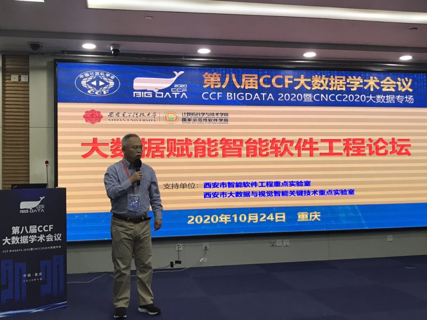 (通讯员 徐悦甡)10月22日至10月24日,第八届中国计算机学会大数据学术会议(CCFBigdata 2020)在重庆召开,会议由中国计算机学会(CCF)主办,CCF大数据专家委员会与西南大学承办,今年会官方网站等单位协办。此次大会也作为中国计算机大会(CNCC)的两个专场之一,与沈阳、杭州、济南3个分会场和厦门专场同时进行线上直播。我校软件工程学科部分学术骨干教师作为大会协办单位集体参会,并举办了“大数据赋能智能软件工程”论坛。