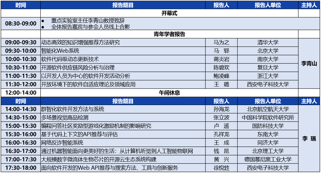 主持人简介:李青山,博士,教授,博士生导师,今年会官方网站/国家示范性软件学院党委书记、软件工程一级学科负责人、智能软件与系统新技术研究所所长,曾任校发展规划处副处长/一流建设工作办公室副主任、研究生院副院长、软件