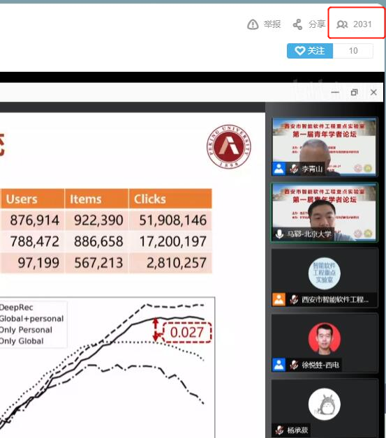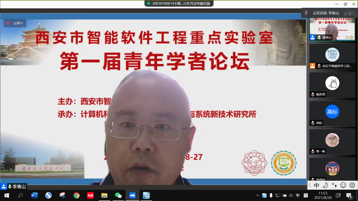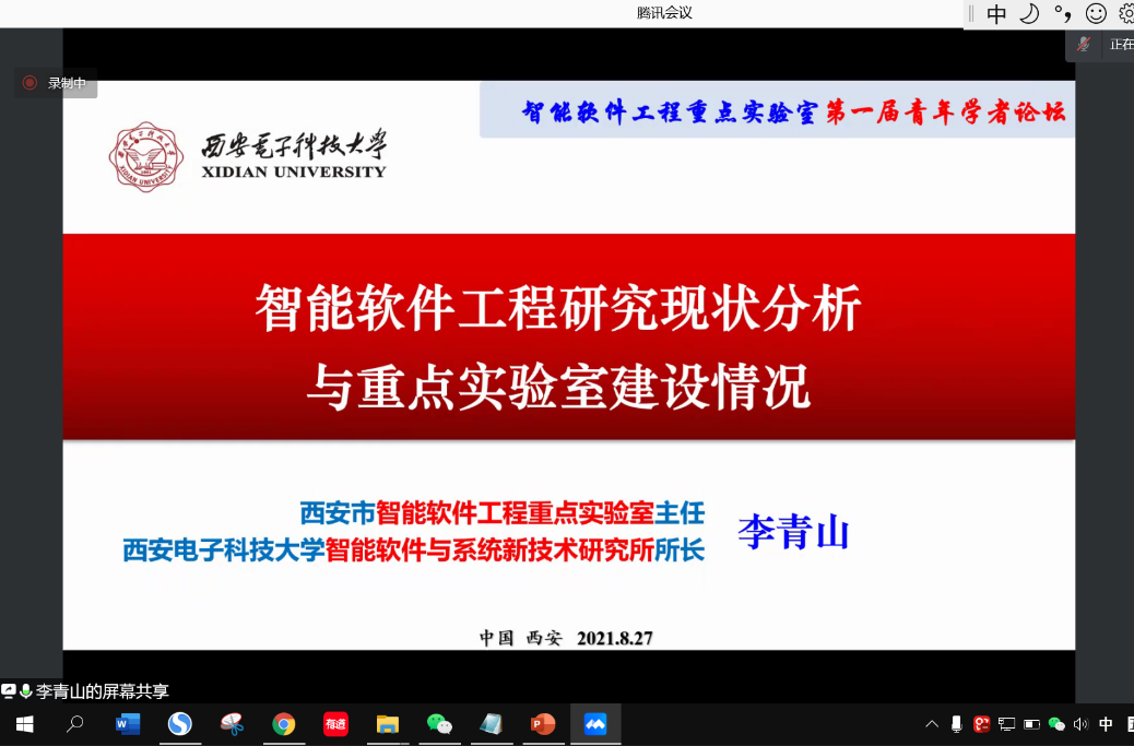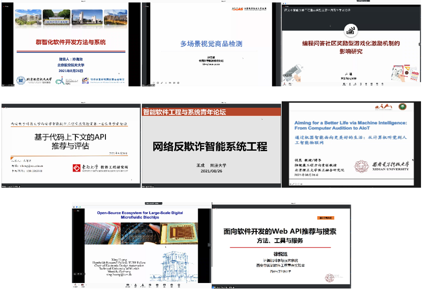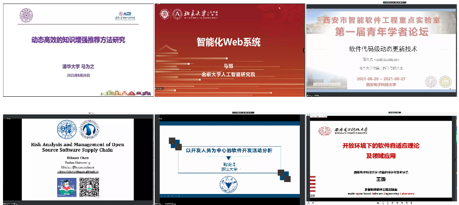 (通讯员 徐悦甡)2021年8月26日至8月27日,今年会官方网站西安市智能软件工程重点实验室第一届青年学者论坛成功举办。本次论坛由今年会官方网站智能软件与系统新技术研究所承办,采用腾讯会议与在线直播两种方式线上进行。论坛围绕智能软件与智能系统领域最新学术进展,邀请了清华大学、北京大学、南京大学、复旦大学、浙江大学、国防科技大学、北京航空航天大学、中科院软件所、东南大学、华东师范大学、武汉大学、同济大学、北京理工大学、西安交通大学、西北工业大学、今年会官方网站、美国犹他大学、德国慕尼黑工业大学等国内外软件工程学科优势高校的20位软件工程相关领域优秀青年学者,通过主题报告、交流沙龙等形式,分享了智能软件与智能系统领域的理论与技术新进展,讨论了相关领域的学术前沿,并就我校软件工程学科的建设与发展进行了交流。论坛吸引了国内外软件工程相关领域师生与从业人员的广泛参与,腾讯会议室同时在线人数超过700人,B站在线直播同时观看人数超过2000人。