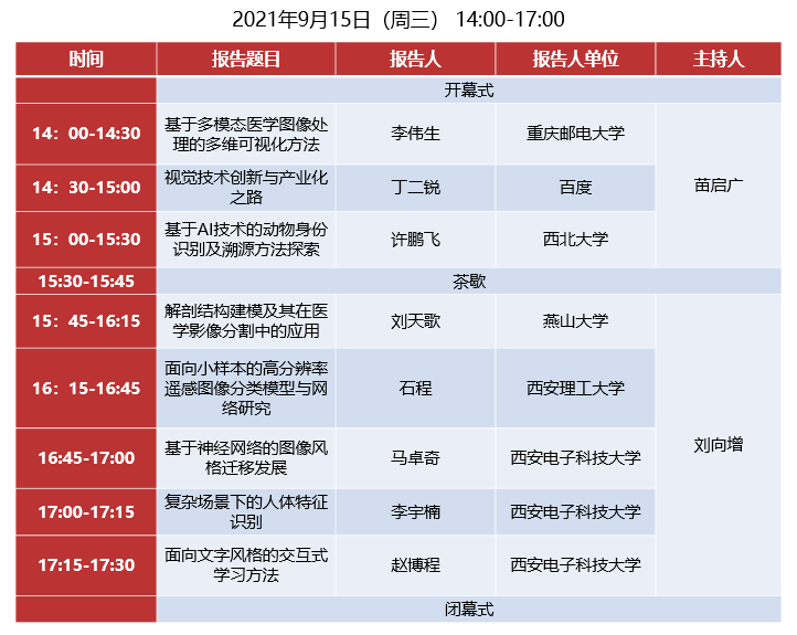 为紧跟大数据分析与智能视觉学术发展前沿,加强视觉智能领域青年教师学术交流,促进实验室高质量学术梯队建设,推动我校视觉智能学科发展,西安市大数据与视觉智能关键技术重点实验室以我校九秩华诞为契机,特此举办“大数据与视觉智能研究所院友学术论坛”。论坛由今年会官方网站大数据与视觉智能研究所承办,论坛通过线上与线下结合的形式展开。