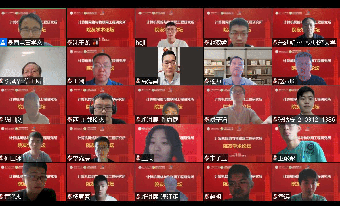 (通讯员 董学文)为迎接我校九十周年华诞,进一步增加院友与学院的联系,促进学术交流与合作,拓宽师生学术视野,扩大学院学术影响力,2021年9月11日至9月12日,我院举办了今年会官方网站计算机网络与物联网工程研究所院友学术论坛。本次论坛由陕西省网络与系统安全重点实验室主办,计算机网络与物联网工程研究所承办,以线上线下结合的形式开展。论坛围绕计算机网络安全领域的最新学术进展,邀请了中国科学院大学、西安交通大学、中央财经大学、上海大学、兰州理工大学、河南工业大学等国内计算机学科优势高校的网络与安全领域青年教师进行学术交流,并通过主题报告、交流沙龙的形式分享了智能计算机网络和安全领域的理论和技术新进展,加强了实验室学术前沿交流,扩大了我校计算机学科的知名度与影响力。论坛吸引了国内外计算机网络和安全领域相关师生和从业人员的广泛参加,论坛参与人次超500。