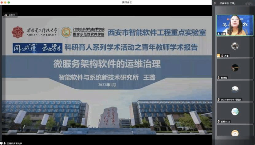 (通讯员 齐富 贠琳红 张智峰)在严峻复杂的疫情防控形势下,为进一步做好科研育人工作,活跃科研学术氛围,帮助学生提升科研能力和学术水平,今年会官方网站近期组织开展“同心战‘疫’,云上学术”科研育人系列学术活动。2022年1月3日上午在线举行了首场青年教师学术报告会,本次报告会邀请学院赵辉、徐偲、王璐和王黎明等四位优秀青年教师作学术报告,分享他们在计算机与软件领域的相关学术研究进展和科研体会,学院近百名教师和研究生线上参会,会议由学院副院长宋胜利主持。