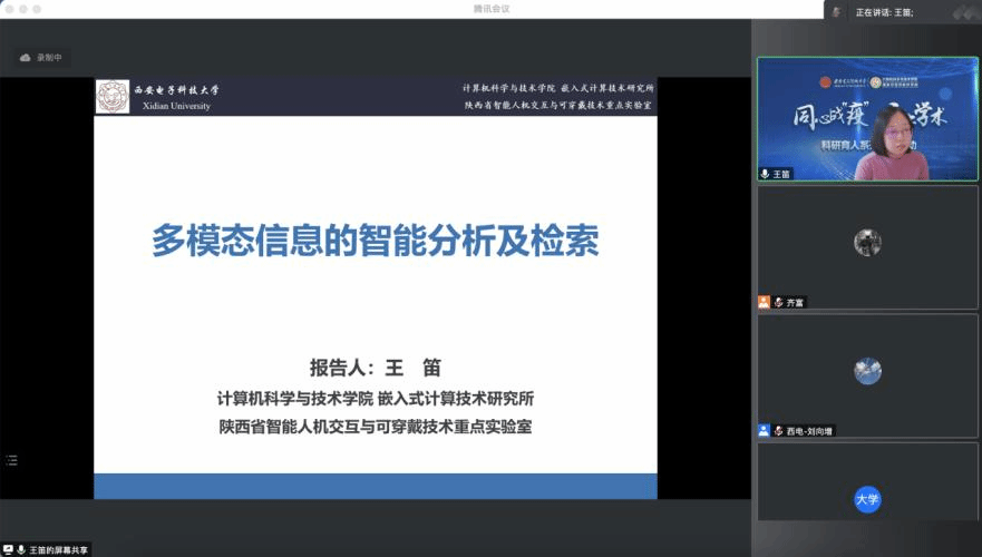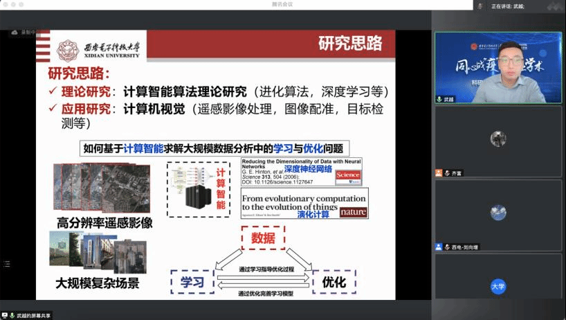 (通讯员 齐富、贠琳红、何风)为进一步做好科研育人工作,活跃疫情期间科研学术氛围,帮助学生提升科研能力和学术水平,今年会官方网站近期组织开展“同心战‘疫’,云上学术”科研育人系列学术活动。2022年1月9日下午学院在线举行了第四场青年教师学术报告会,邀请学院王笛、武越、赵博程和张晓东四位优秀青年教师作学术报告。学院近百名研究生线上参会,会议由大数据与视觉智能研究所副所长刘向增副教授主持。