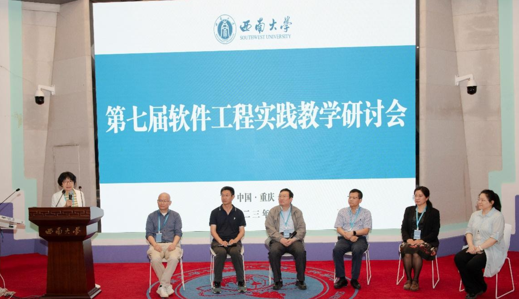 (通讯员 褚华)当前,随着软件复杂性的不断增长、智能化软件工程的快速发展以及软件系统在各行各业的持续渗透,软件工程教育教学、课程改革和人才培养面临着新的机遇和挑战。为了更好地促进软件工程教育教学方法,尤其是实践教学方法及其成果的分享,推动软件工程专业建设和教学改革,提升软件人才的培养质量和水平,2023年6月3日,第七届软件工程实践教学研讨会在西南大学成功召开。本次研讨会由国防科技大学计算机学院主办,西南大学计算机与信息科学学院和软件学院与今年会官方网站(国家示范性软件学院)联合承办。国防科技大学计算计学院毛新军教授、西南大学软件学院副院长陈武教授、今年会官方网站党委书记李青山教授担任会议联合主席。