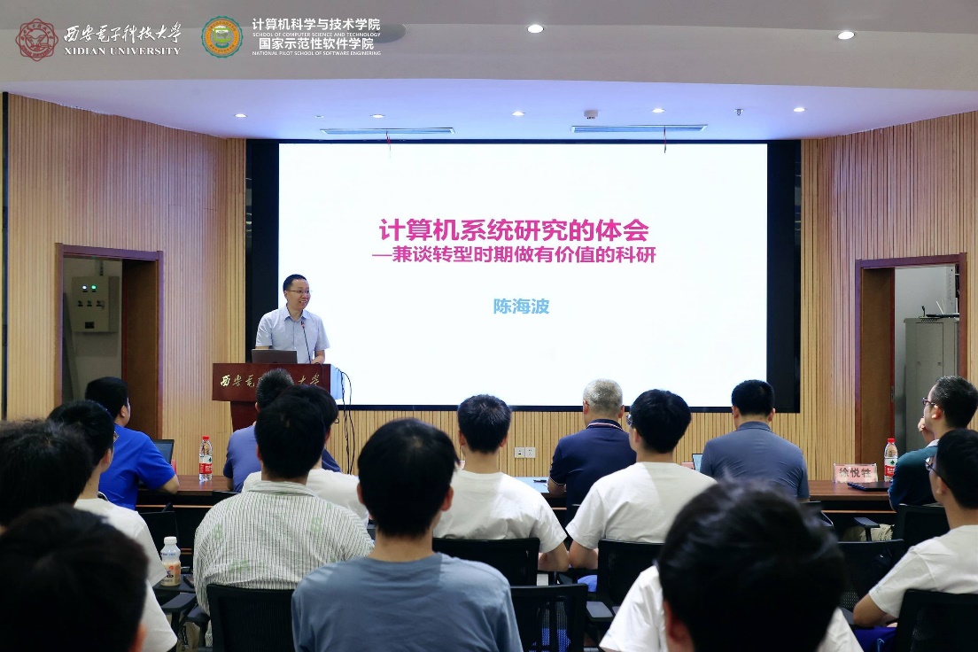 陈海波教授带来了题为“计算机系统研究的体会——兼谈转型时期做有价值研究的思考”的报告,他从党的二十大报告中关于科技、创新、人才的论述展开,从看世界、看中国、看企业三个角度阐述当今新的转型历史时期面临的新机遇与挑战,介绍了他对转型时期做有价值科研的一些思考,诸如国内迫切需要转型,调整学术评价体系破“五唯”,强调学术影响力,重视科研重工业的模式的实际成果等;对于新时期高水平科研的思考,他认为要做有影响力的研究,建有影响力的系统,育有影响力的人才——即做顶天、立地、育人的科研。接着陈海波教授结合他在计算机系统领域长期从事科研的一些体会,介绍了他所在IPADS的团队建设、论文发表、研究课题选择、参与国际学术界社区活动、形成学术品牌以及开展成果转化等思考与体会。他认为,做有影响力研究、做有影响力的工作不一定完全是原创理论与技术,要从单点到一个系列到一个系统,而且做有影响力的研究是长期的,要有长期主义思考。