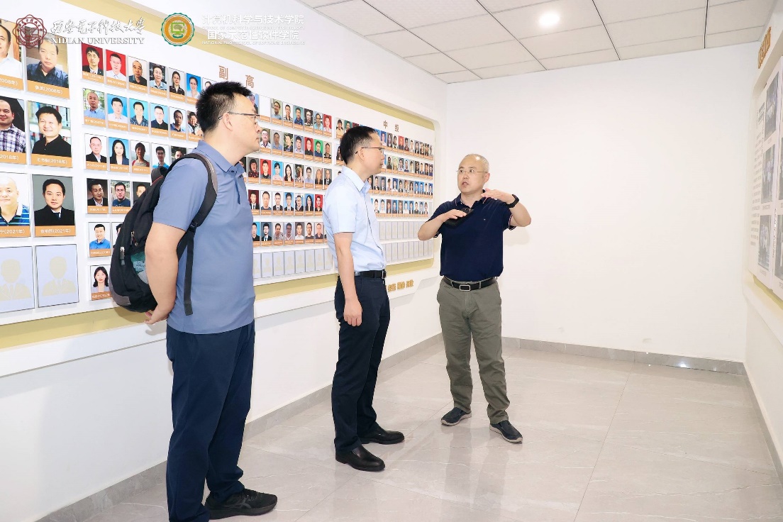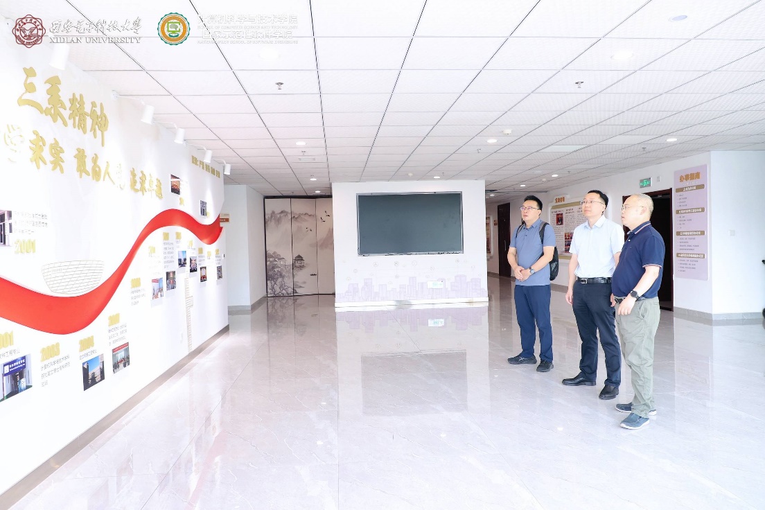 首先,陈海波教授、武延军研究员在李青山教授陪同下,参观了今年会官方网站在新启用的网络安全创新研究大楼中的文化墙建设。李青山教授讲解了学院的发展历程,介绍了学院在专业建设、学科建设、科学研究、党建创新、人才培养等方面取得的成果。