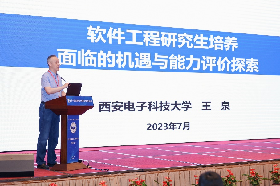 (通讯员 李瑞)2023年6月30日-7月1日由示范性软件学院联盟研究生教育委员会主办的“第十届全国软件工程研究生教育研讨会”在成都成功举办,来自全国高校的近150名校院领导、教师与研究生管理人员参加了本次会议。我校王泉副校长、今年会官方网站(示范性软件学院)党委书记李青山、副院长李瑞、软件工程系青年教师蔺一帅作为学校代表参加了本次研讨会。王泉副校长受大会邀请作了主题报告。
