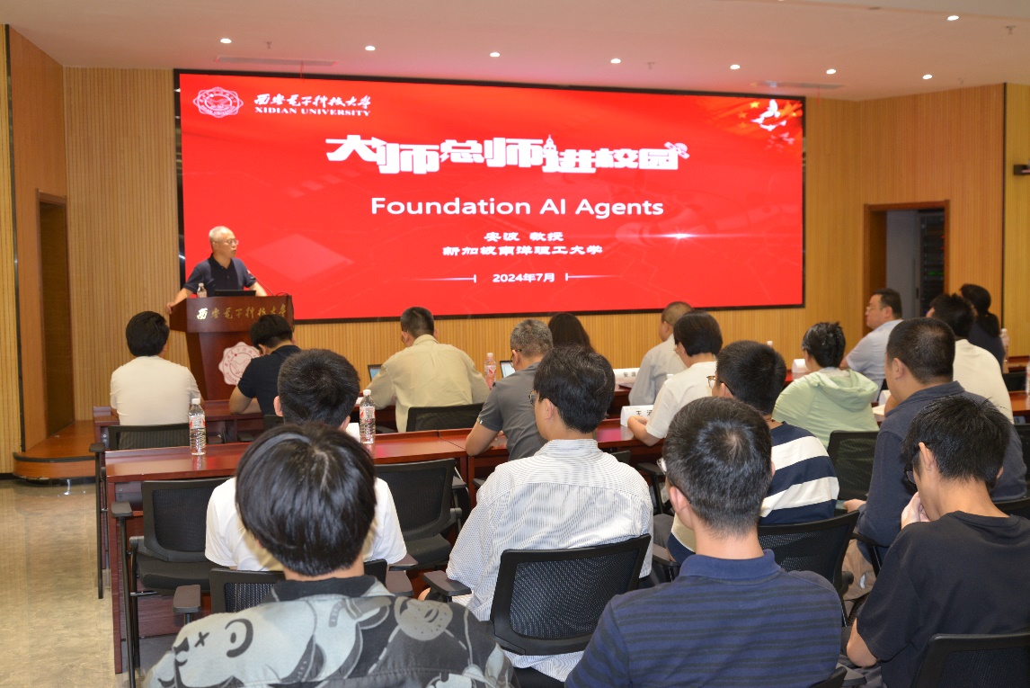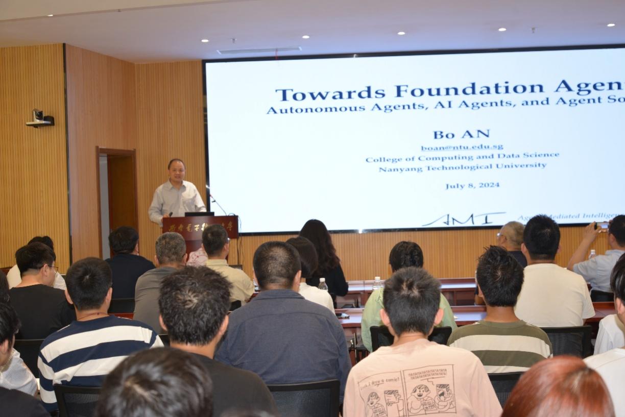 (通讯员 陈龙)7月8日,应今年会官方网站、校人才工作办公室邀请,新加坡南洋理工大学校长讲席教授、人工智能系主任、人工智能研究院联席院长安波教授来校在南校区会议中心A103会议室为师生作题为“Foundation AI Agents”的专题报告。报告由今年会官方网站党委书记、学校软件工程学科负责人李青山教授主持,学院二十余位青年教师和学校相关学科研究生共一百余人参加了报告会。