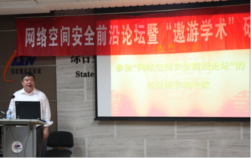 论坛期间,杨银堂副校长首先对各位专家学者百忙中莅临论坛表示了欢迎与感谢,并介绍了网络与信息安全学院及网络空间安全一级学科的基本情况,分析了网络空间安全对于国家安全的重大意义。论坛报告期间,受邀专家学者进行了精彩的前沿学术报告,涉及面向移动应用的密码思考、APT攻击及应对、信息安全从实践走向科学、云计算中的攻击与防御关键技术、网络空间安全若干发展趋势、网络空间中的安全服务与隐私保护等基础理论和关键技术等。