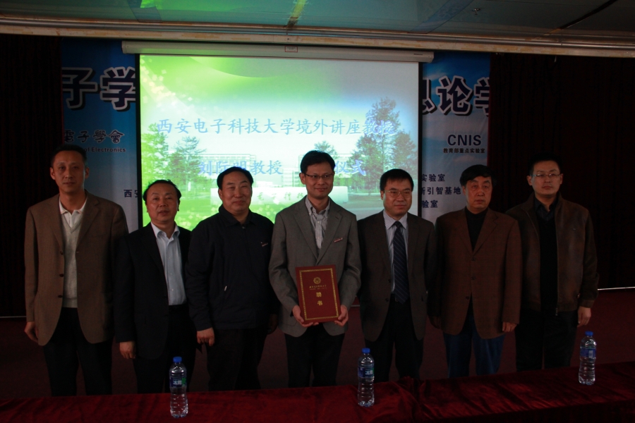 随后,刘际明教授发表了简短的受聘演讲,他说,西电是一所非常出色的大学,非常感谢西电师生给予如此高的荣誉,他很乐意与西电师生进行深入的学术探讨。他将经常来西电开展学术交流与合作,为我校的学科发展、科学研究和人才培养做努力,为把西电建设成一所特色鲜明、研究型、开放式,国内一流、国际知名的高水平大学而贡献力量。他的演讲博得了现场师生的热烈掌声。