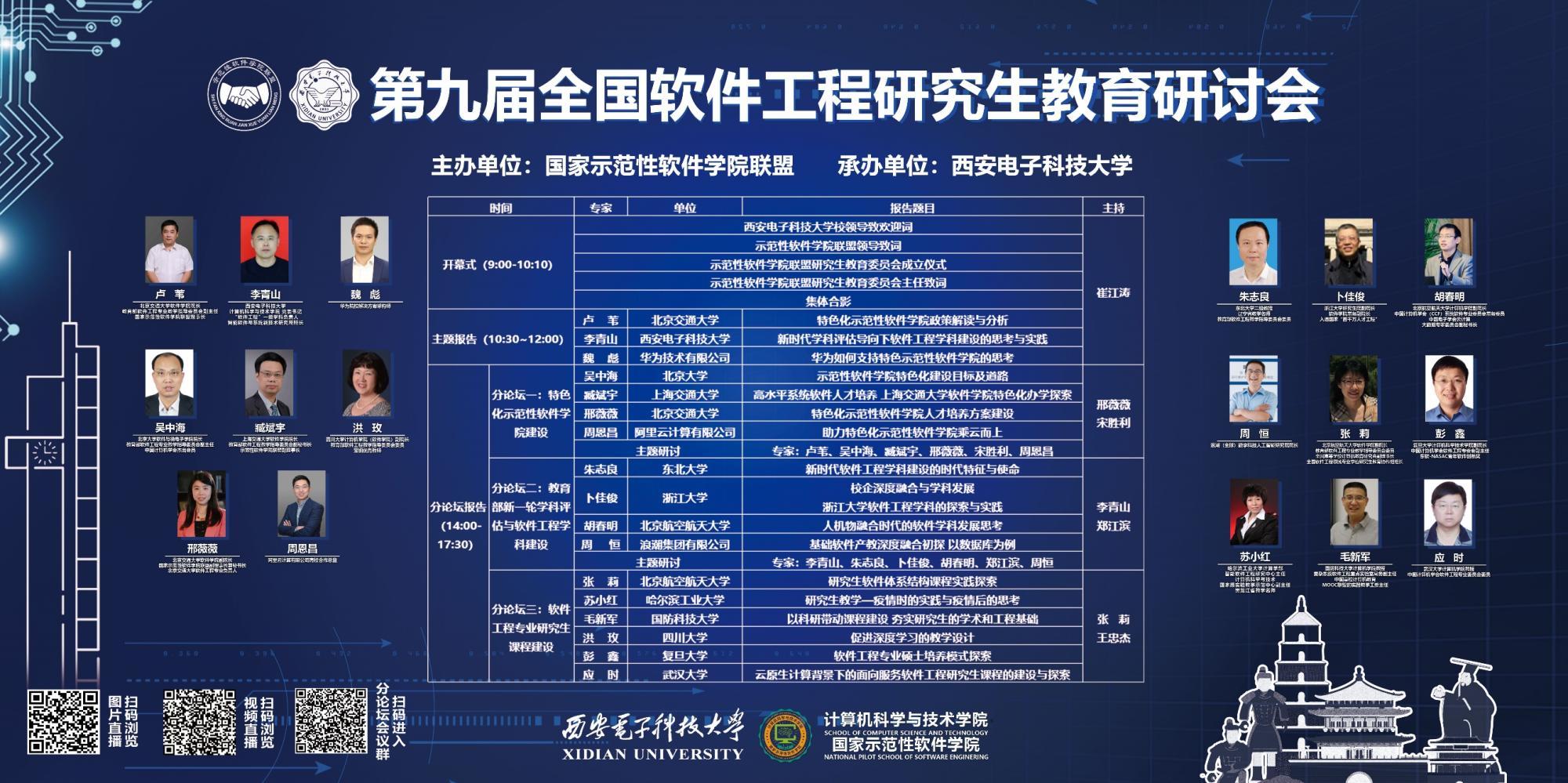 (通讯员 贠琳红)软件是信息技术之魂、网络安全之盾、经济转型之擎、数字社会之基,高层次软件人才培养是实现中国软件高质量发展的必然要求和重要支撑。为全面贯彻落实习近平总书记对研究生教育工作的重要指示和全国研究生教育会议精神,落实立德树人根本任务,深化软件工程领域研究生培养模式改革,促进软件工程研究生教育内涵式发展,切实提高研究生培养质量,2020年9月18日-20日在今年会官方网站举行了第九届全国软件工程研究生教育研讨会。此次研讨会由国家示范性软件学院联盟主办,今年会官方网站(示范性软件学院)承办,来自全国近百所高校的软件学院和计算机学院的院长及专业负责人共计260余人在现场或通过线上视频直播共同参加了此次研讨会,线上图片直播产生了近十万次的访问量。校党委书记查显友、校长杨宗凯在会议期间慰问了参加研讨会的报告专家和参会嘉宾。