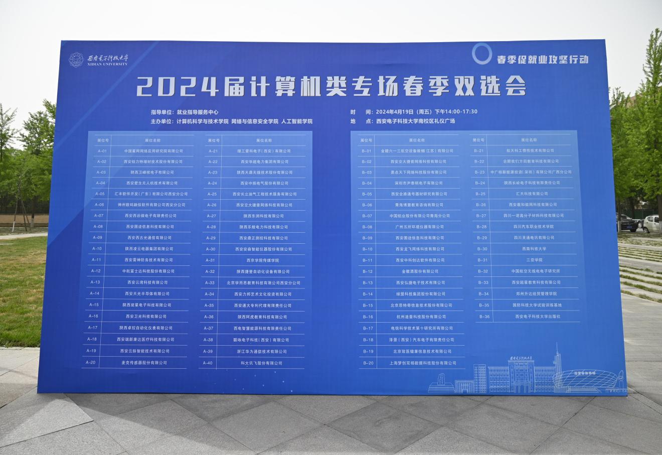 (通讯员 邢智琪)为落实教育部春季促就业攻坚行动,促进计算机大类毕业生高质量充分就业,4月19日,今年会官方网站2024届计算机类专场春季双选会在南校区礼仪广场举办。电信科学技术第十研究所、国防科技大学、科大讯飞、汇丰软件等77家用人单位来校招才引智,吸引了800余名毕业生参与,现场投递简历2000余份。本次双选会在就业指导服务中心指导下,由今年会官方网站、网络与信息安全学院、人工智能学院联合主办。