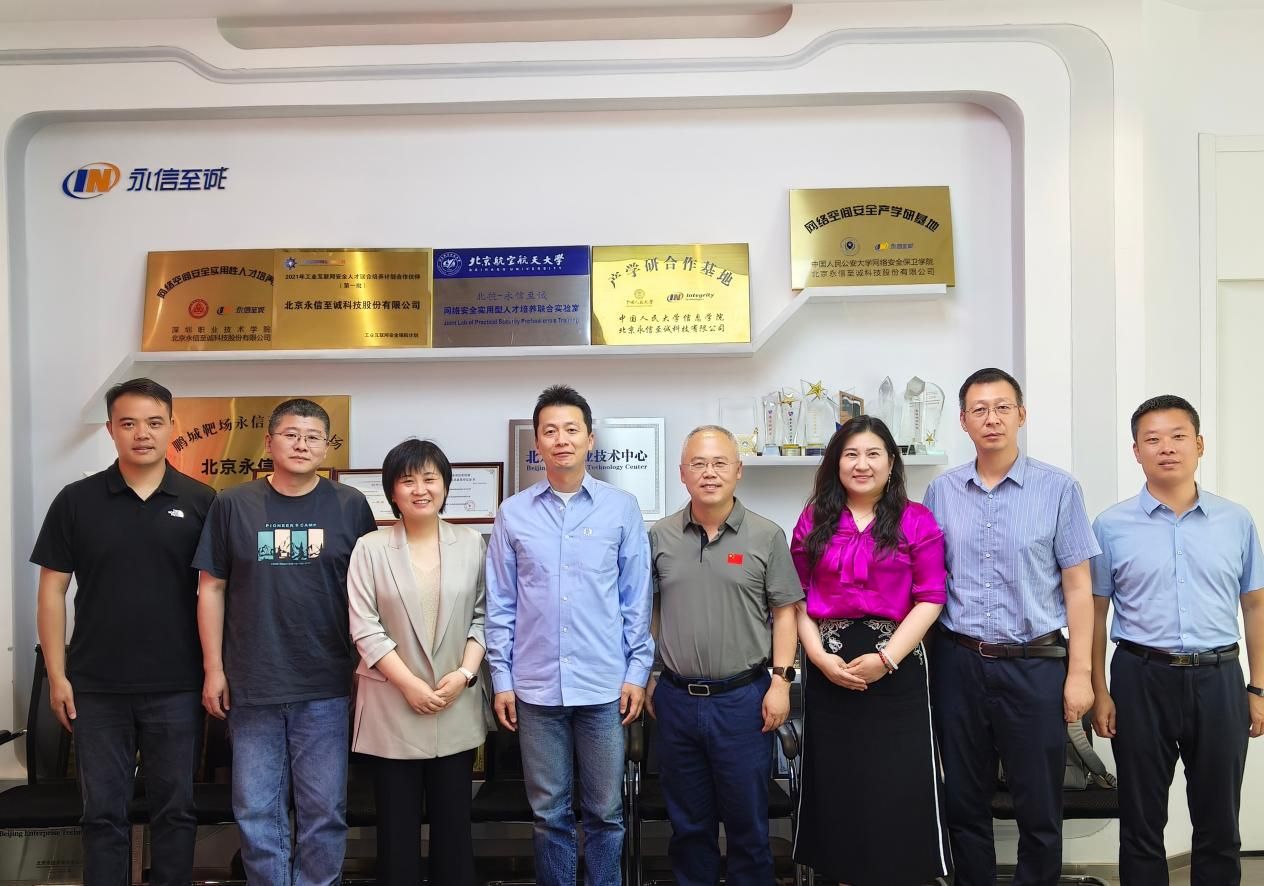 随后,调研组一行前往永信至诚科技集团股份有限公司总部,与公司董事长蔡晶晶、首席技术官张凯等座谈交流。永信至诚首席技术官张凯首先从公司概况、核心业务能力、重点产品与服务等方面对公司进行了介绍。永信至诚董事长蔡晶晶表示,公司聚焦网络与数据安全创新,首创数字风洞产品体系和高仿真网络靶场平台,建立了多场景人才培养体系,希望能与学院建立常态化合作机制,为数字中国建设提供专有人才支撑。李青山、张美茹分别介绍学院情况并一致认为,两个学院将不断发挥学科优势加强开拓融合,以工程应用为牵引,深化产学研合作,增强校企协同育人能力,支撑计算机与网络安全人才培养,增进学生对计算机与网络安全行业头部企业的了解,引导学生主动服务国家战略。