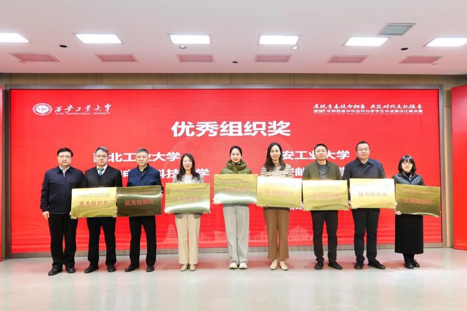 本次比赛由中共陕西省委教育工委、陕西省教育厅主办,陕西省高等教育学会中外合作办学分会和西安工业大学承办。中共陕西省委教育工委副书记、一级巡视员王海波,西安工业大学校长姚尧,陕西省教育厅对外合作与交流处(港澳台办公室)负责人,陕西省高等教育学会中外合作办学分会相关负责人等领导嘉宾出席活动,并为获奖选手与优秀组织单位颁奖。